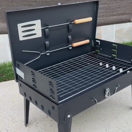 No hay nada como una carne hecha a las brasas, y esta parrilla te permite hacerlo en cualquier lugar, sin complicaciones.